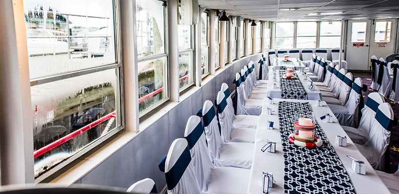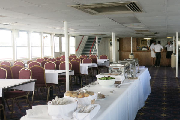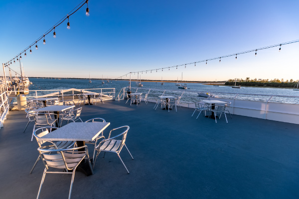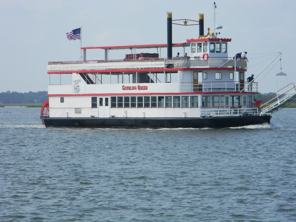 The Carolina Queen is a classic paddlewheel riverboat offering a unique venue for private events on Charleston Harbor. With a capacity of up to 400 guests, it features three decks for entertaining, including a main bar and satellite bar, making it ideal for large gatherings such as fraternity formals, weddings, and corporate events. The vessel is available for private charters year-round and is evocative of the old Mississippi River Boats, complete with a working paddlewheel and smokestacks.